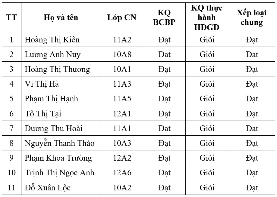Kết quả 11/11 Giáo viên dự thi đều đạt danh hiệu “Giáo viên chủ nhiệm lớp giỏi cấp trường” năm học 2024-2025. Kết quả cụ thể như sau: